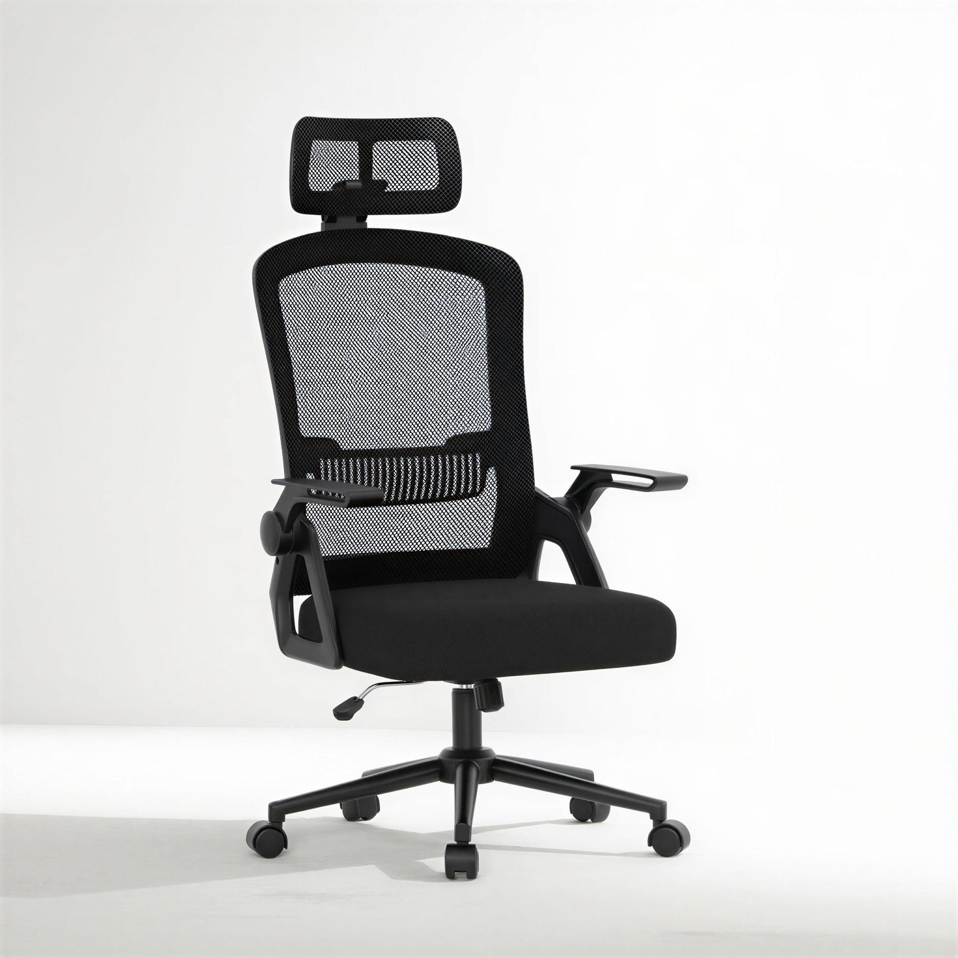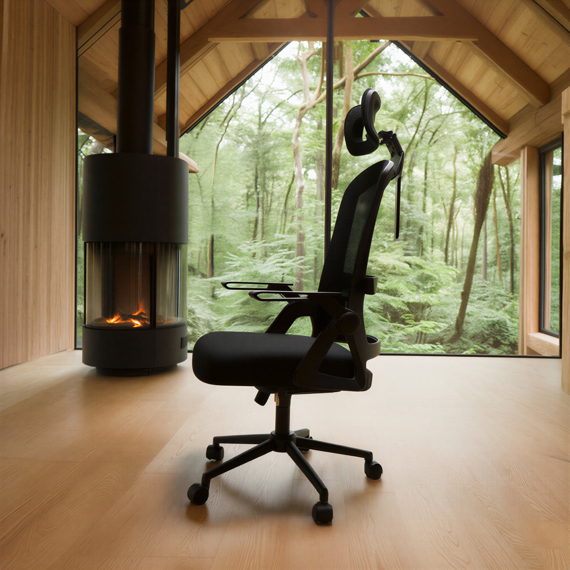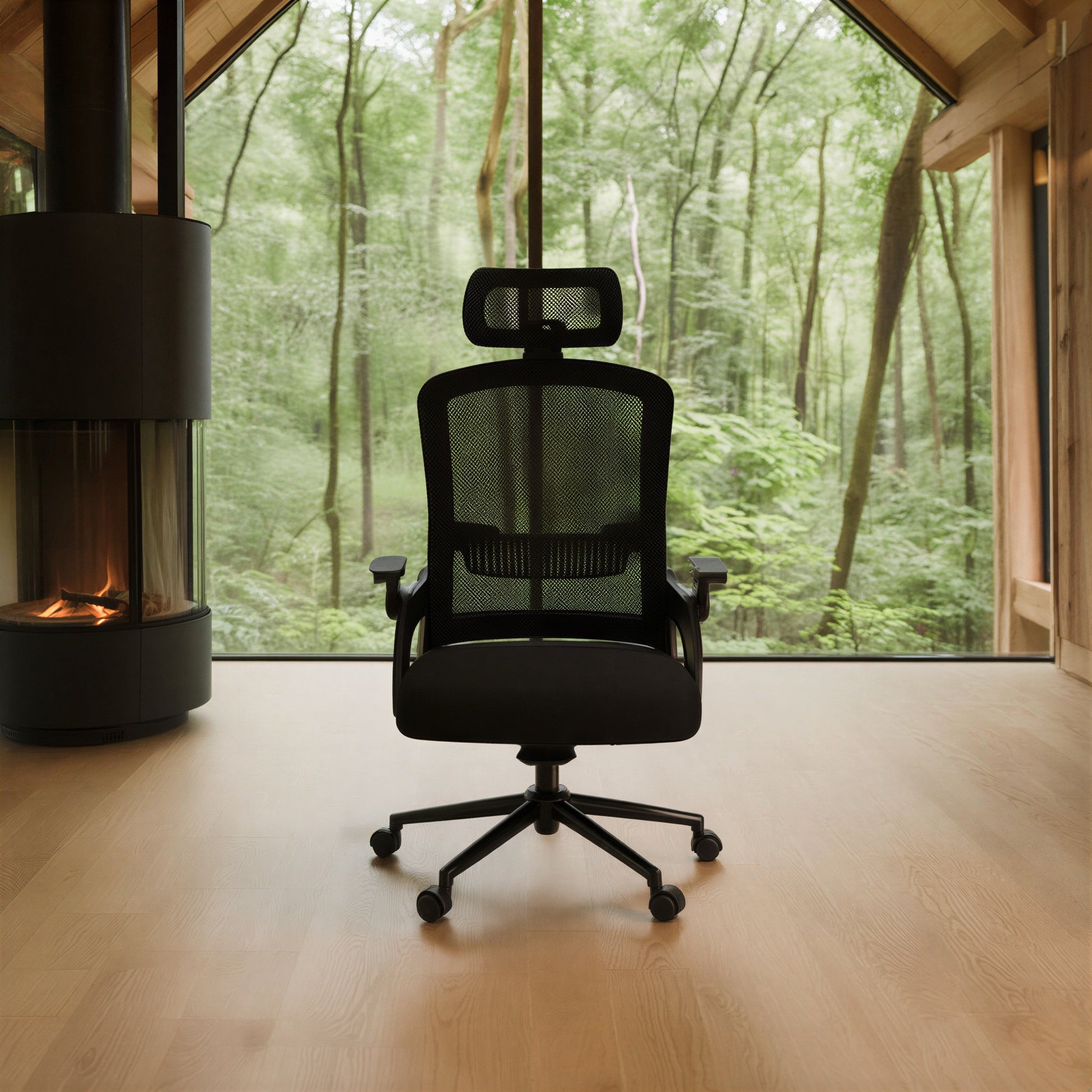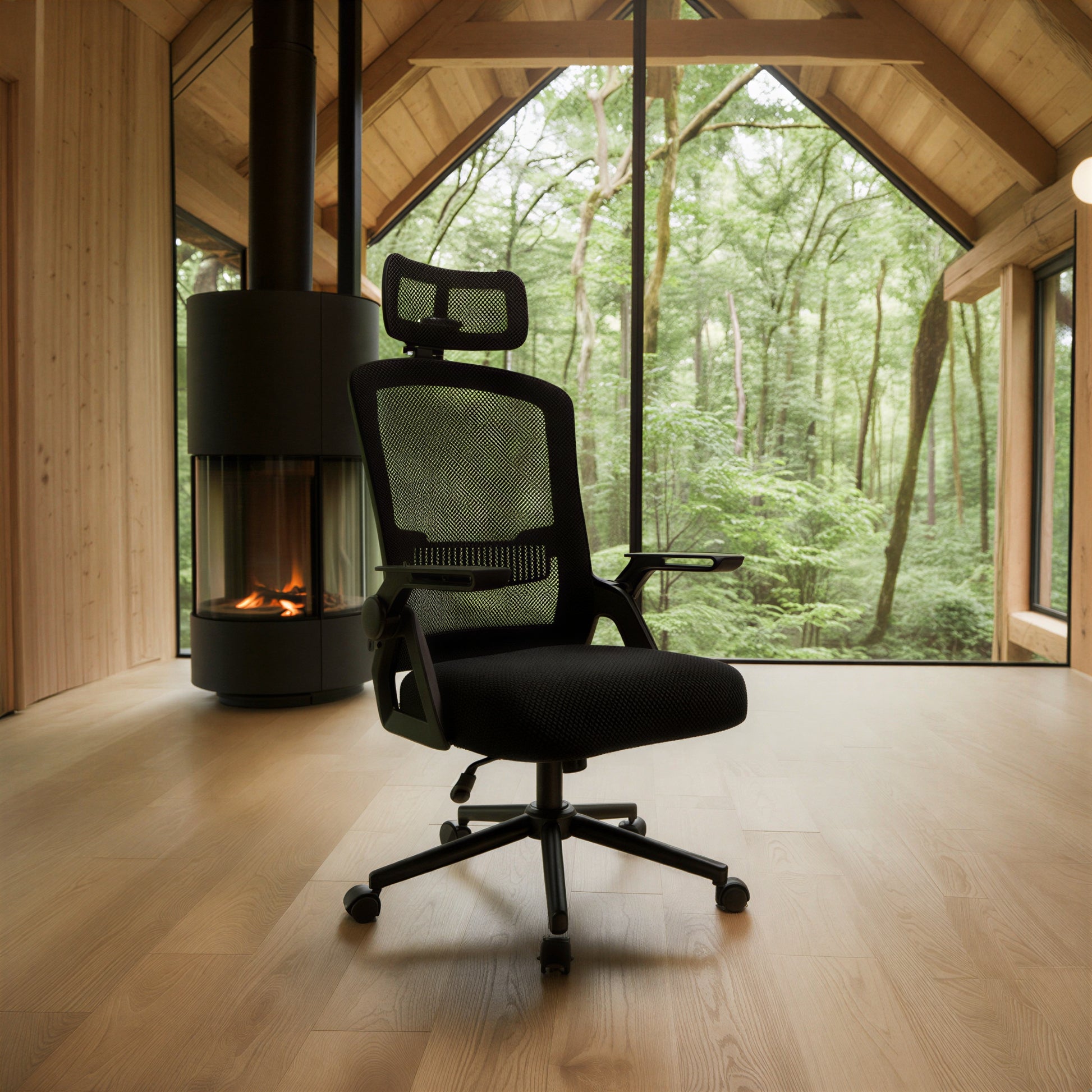 Dieser Bürostuhl ist für den Einsatz im Büro oder Homeoffice vorgesehen und verfügt über eine Sitz- und Rückenfläche aus Netzmaterial sowie eine gepolsterte Sitzfläche aus Schaumstoff; die Sitzhöhe ist verstellbar (ca. 10 cm), die Rückenlehne kann geneigt werden und unterstützt eine Schwingbewegung im Bereich von etwa 90° bis 105°, zusätzlich sind eine höhenverstellbare Kopfstütze, verstellbare Armlehnen sowie ein manuell einstellbarer Neigungsmechanismus integriert, der Stuhl ist drehbar, mit Rollen ausgestattet und für den täglichen Gebrauch konzipiert, die ungefähren Abmessungen betragen vorne 61 cm Breite, eine Sitzbreite von ca. 48 cm, eine Sitztiefe von ca. 47 cm sowie eine Gesamthöhe von ca. 118 cm, Montage erforderlich.